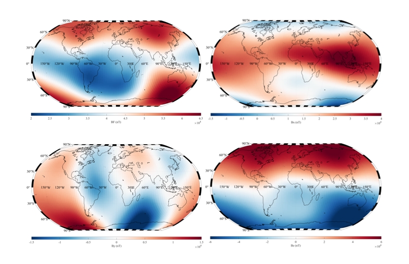 磁场是地球重要的保护屏障,它能阻挡太空中的宇宙射线及太阳风高能粒子直接达到地球,从而保护地球上的生命免受这些高能射线的伤害。地磁场主要由地球内部液态铁镍环流以及岩石圈中磁性岩石产生,此外,受太阳风及空间电流的影响,地磁场也表现出明显的扰动特征。因此,对地球磁场的相关研究不仅可以很好地反映地球外核的动力学过程及揭示地球内部物理结构和物质运动规律,对于深入理解空间天气现象,特别是太阳风-磁层-电离层耦合过程具有重要意义。高精度地磁场模型在地面和空间导航、矿物勘探、空间环境监测等多个领域中展现了广阔的应用前景。